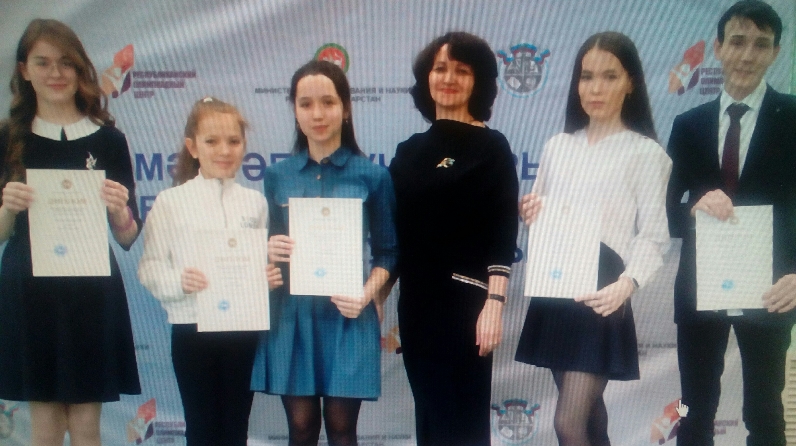 Совет (Сәгъдиева Раилә, 175нче урта гомуми белем бирү мәктәбенең 7 сыйныф укучысы, Яңа Савин (11]) Минһаҗев Айнур, 179нчы Гимназия-мәгариф үзәге «нең 8 сыйныф укучысы, Совет (Таҗиева Әминә, 121 нче лицейның 9 сыйныф укучысы җиңүче булды.С. А. Әхтәмова), Кайбыч (Абдрахманова Айзилә, Евгений Геннадиевич Тутаев исемендәге Федоровка урта гомуми белем бирү мәктәбенең 10 сыйныф укучысы; Арча (Мостафина Камилә, Арчаның 6нчы урта гомуми белем бирү мәктәбенең 10 сыйныф укучысы»); Ганиева Наилә, Кукмара ш.т. б. Булатов исемендәге күппрофильле лицейның 11 сыйныф укучысы.