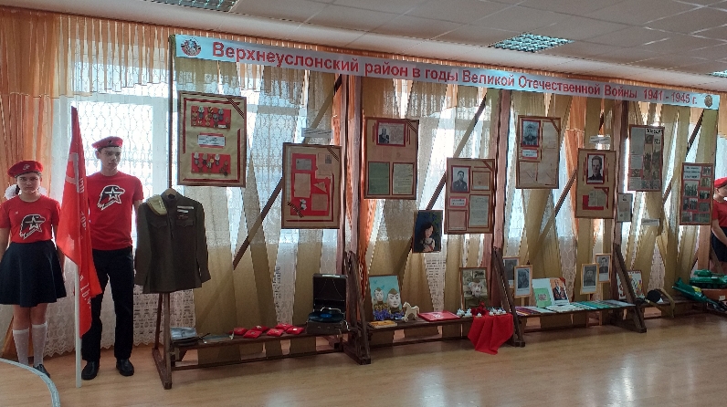 Күргәзмәнең кайбер уникаль экспонатлары Бөек Җиңүнең яшьтәшләре булып тора. Юнармия эше һәм планнары турында кунакларга Шеланга урта мәктәбенең 11 сыйныф укучысы Виолетта Крайнова сөйләде.