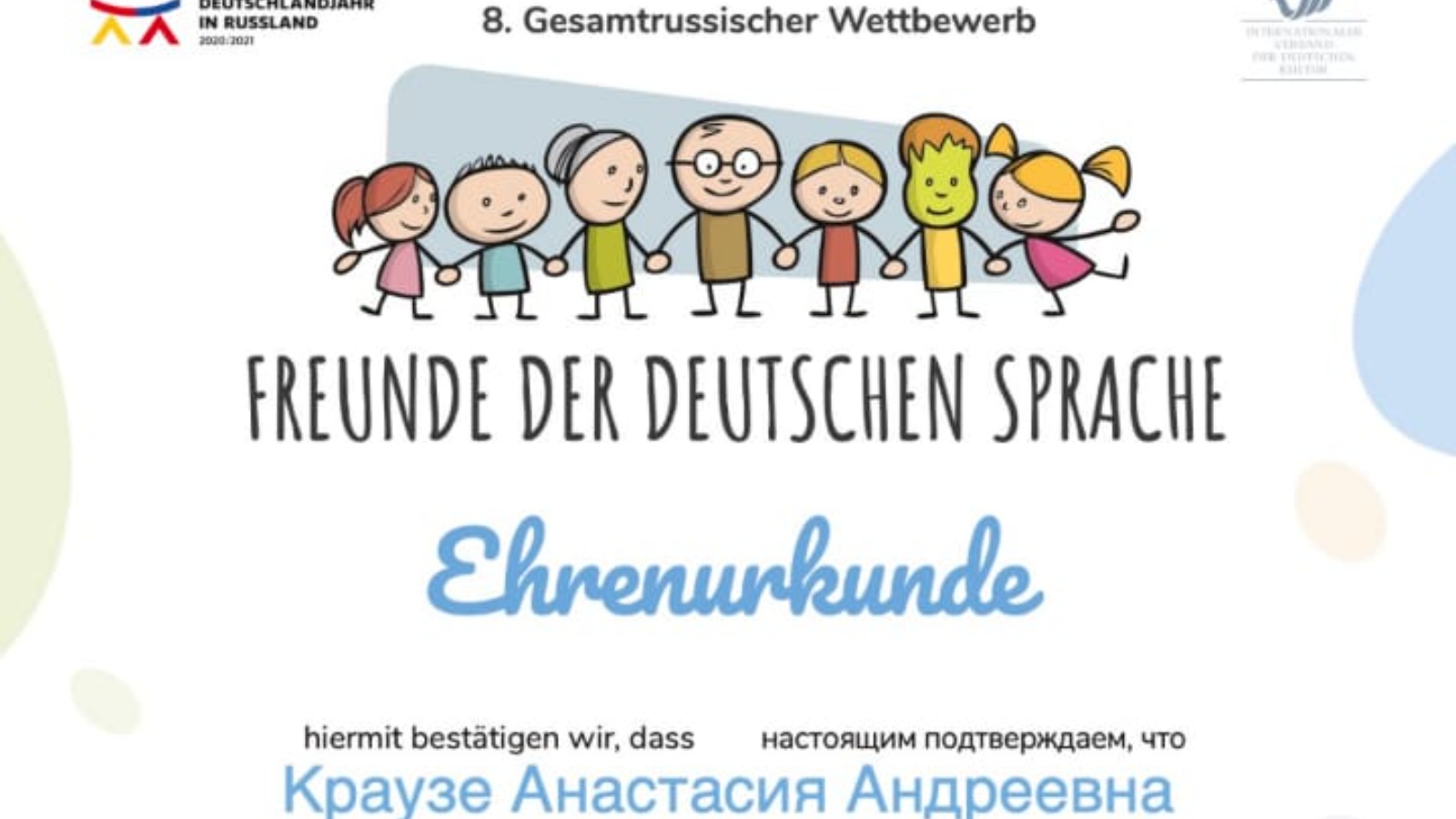 Ә нәселендә немец тамырлары булган 8нче сыйныф укучысы Анастасия Краузе «чемоданнан уенчык» дигән әкият иҗат итте. Әкият жюри тарафыннан югары бәяләнде.