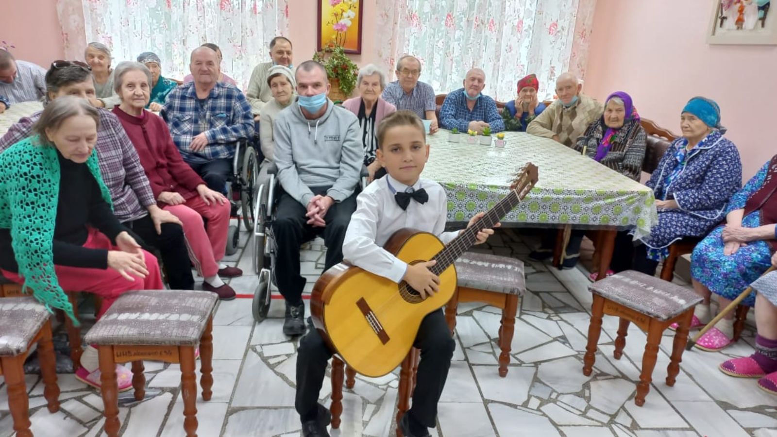 Бүген Югары Осланның өлкәннәр өчен интернат йортында гитарачылар-класслы ансамбль музыкасы концерты булды. Концерт аралашу рәвешендә узды. Өйдә яшәүчеләр таныш көйләр астында җырлар җырлый башлагач, укучылар өчен көтелмәгән хәл булды.