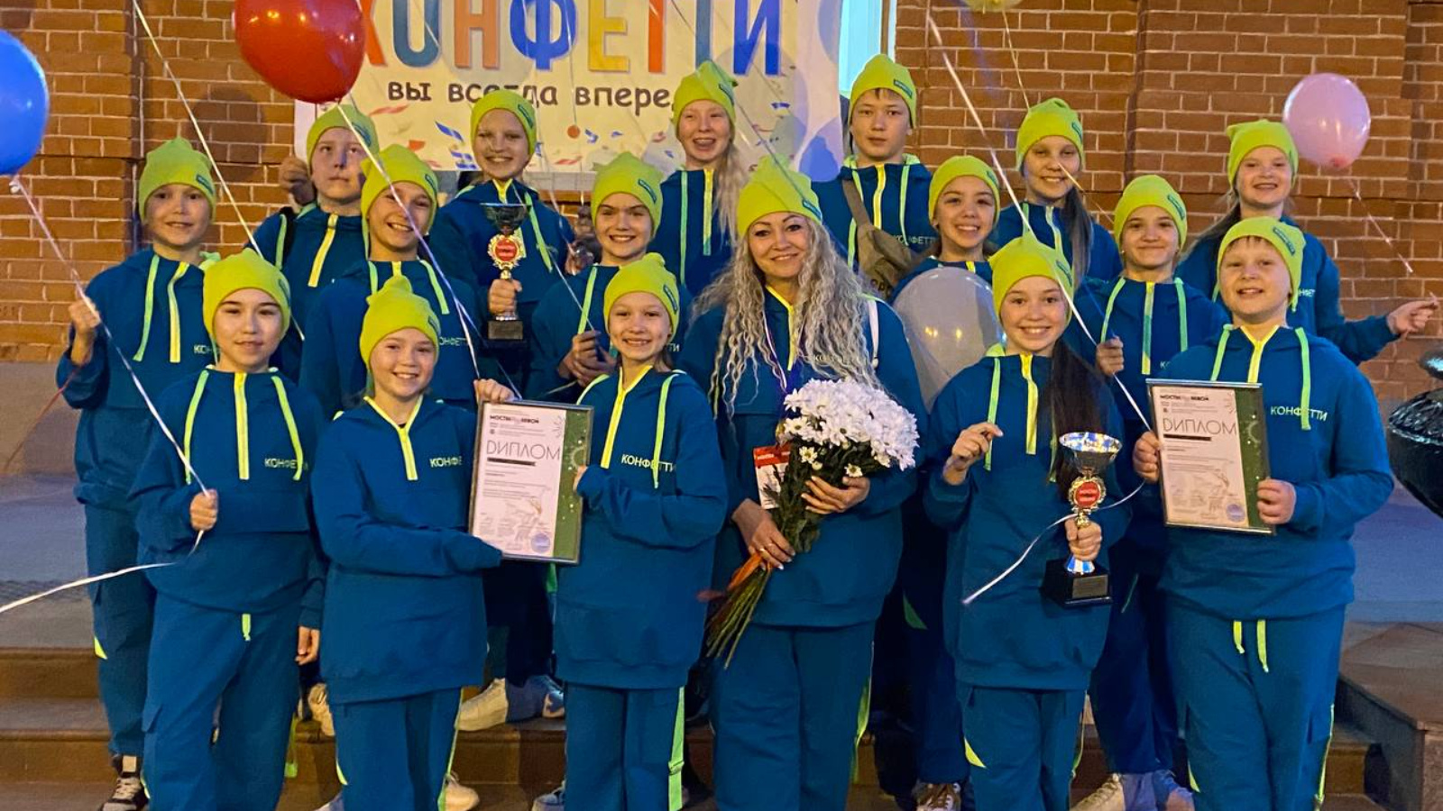 Бүләкләү тантанасында “Конфетти” коллективы Халык биюе номинациясендә, 10-13 яшь Лауреат Дипломын һәм I дәрәҗә кубогын алды, ә Эстрада биюе номинациясендә лауреат дипломын һәм II дәрәҗә Кубогын яулады. Шулай ук коллективка әлеге конкурста катнашу өчен 15 мең сумлык Диплом - сертификат бүләк ителде. Ә укытучы Антонова Нина Валентиновна югары профессионализм, үзешчән хореография сәнгатен үстерүгә шәхси өлеш керткәне һәм коллективта катнашучыларның югары дәрәҗәдәге башкару осталыгы өчен рәхмәт хаты белән билгеләп үтелә, ул "Нева өстендә күперләр" Халыкара хореография сәнгате конкурсында 2023 елда күрсәтелгән.