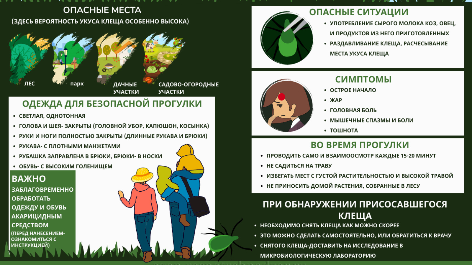 -урманнарда, урман паркларында, шәхси бакча-бакча участокларында КВЭ буенча эндемик территорияләргә барганда,