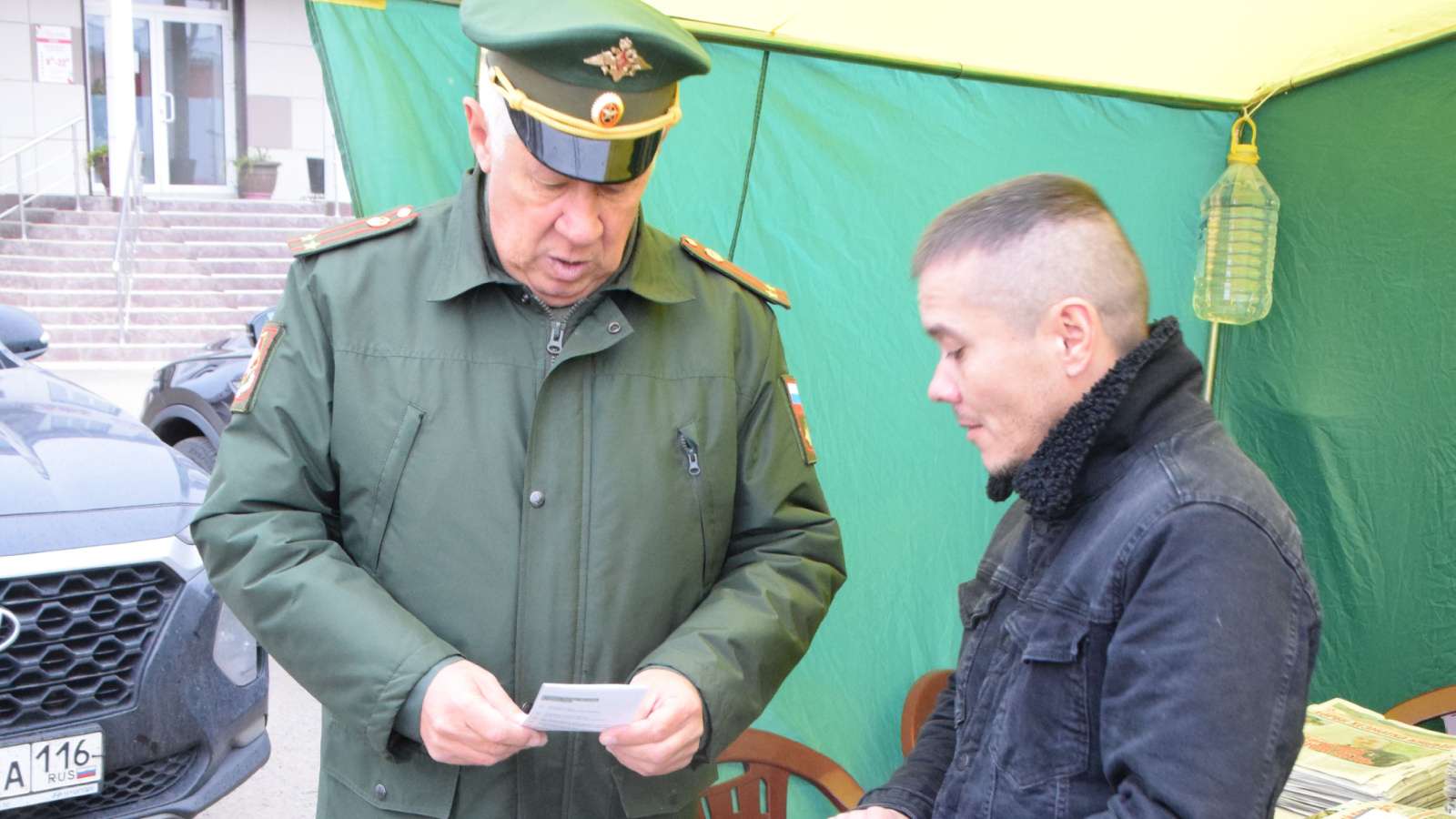 Югары Осланда, марафон кысаларында, сәүдә-офис үзәгеннән ерак булмаган мәйданда пикет уза, анда контракт хезмәте узуның өстенлекләре һәм шартлары турында актуаль мәгълүмат алырга мөмкин.