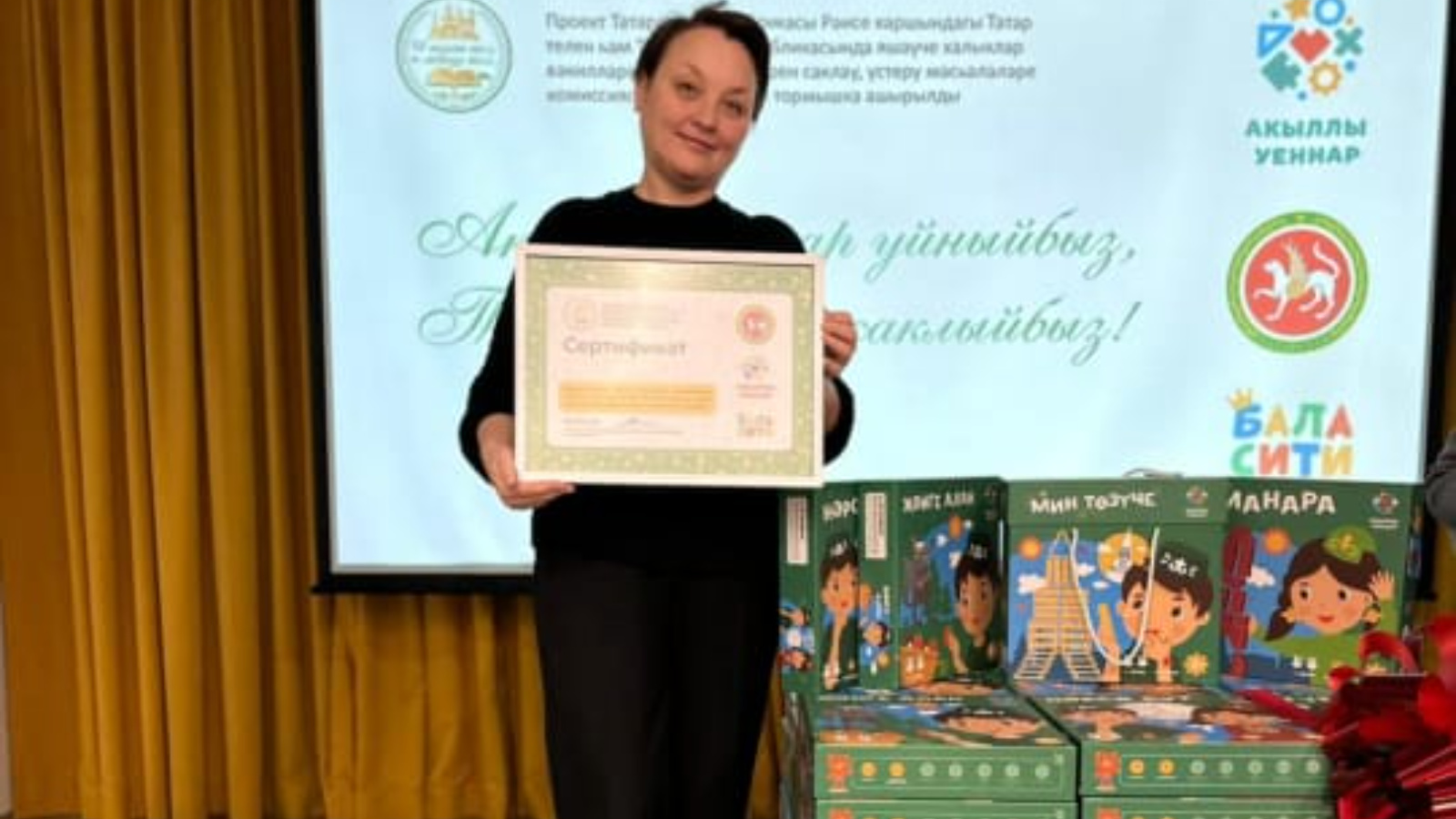 Бүген "Бала-Сити" ҖЧҖ базасында "Солнышко" балалар бакчасы мөдире Насибуллина Гөлшатка "Акыл Уеннары" проекты буенча программа укыту хокукына сертификат һәм балалар бакчасында тәрбияләнүчеләр өчен уеннар комплекты тапшырылды.