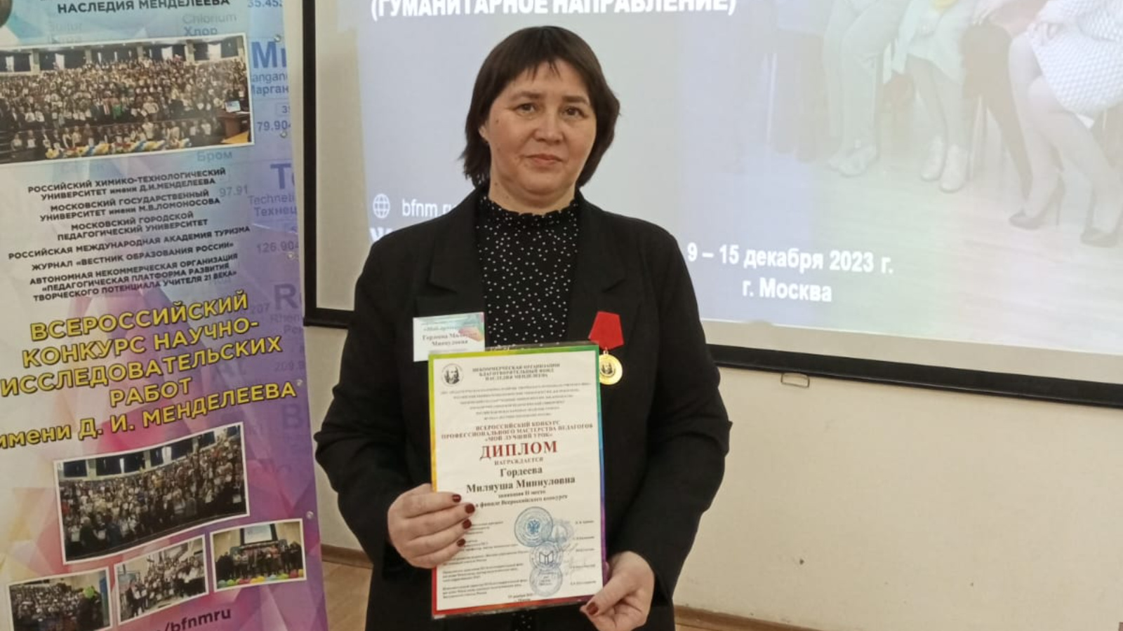 2023 елның 9-15 декабрендә Мәскәү шәһәрендә «Менделеев мирасы Хәйрия фонды» коммерцияле булмаган оешмасы базасында «минем иң яхшы дәресем-2023»Бөтенроссия педагогларның һөнәри осталык конкурсының көндезге этабы уздырылды.