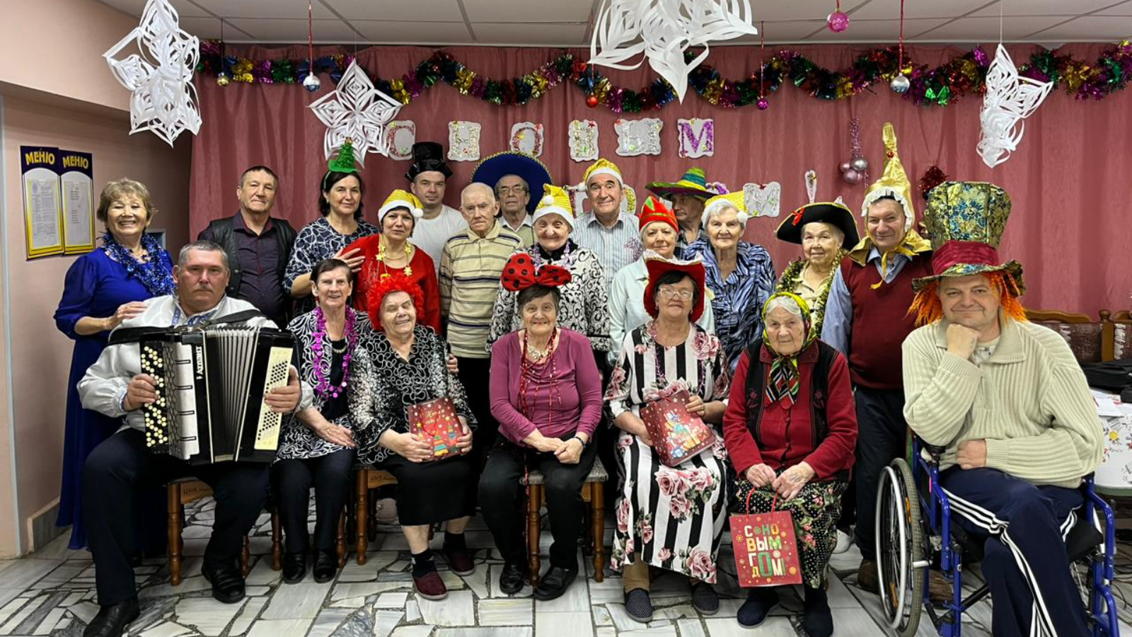 "Ура" да "кышкы фаразлаучылар»конкурсы узды.Җиңү өчен бәйрәмдә катнашучы һәркем карнавал атрибуты һәм бүләкләр алды. Һәркем яраткан бию һәм традицион истәлек фотосы да булды. "Чара төсле, күңелле һәм чын мәгънәсендә Яңа ел бәйрәме булды! - ди мәдәният оештыручы Наталья Котова. - Мондый бәйрәмнәрне без ел саен оештырабыз, шул исәптән РДКДАН социаль партнерларыбыз һәм район ветераннар советы катнашында, алар белән хезмәттәшлек турында килешүләр төзелгән. Яшәүчеләр һәрвакыт яхшы җавап бирәләр: алар яңа һәм иске дуслар белән аралашырга, үз талантларын күрсәтергә яраталар. Мондый шатлык белән реабилитацияләнү безнең яшәүчеләр өчен бик файдалы - алар тынычланалар, уңай якка көйләнәләр, тирә-юньдәгеләр белән яхшырак аралаша башлыйлар.
