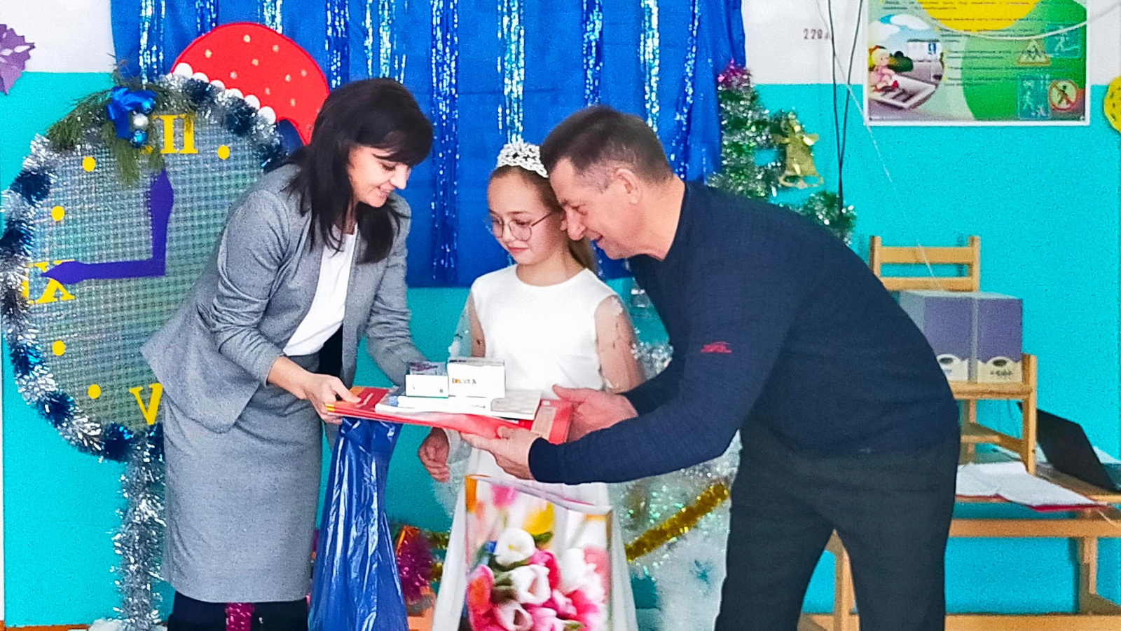 Идарә башлыгы балаларга бүләкләр тапшырды, аларга сәламәтлек һәм иң яшерен теләкләрен үтәүләрен теләде.