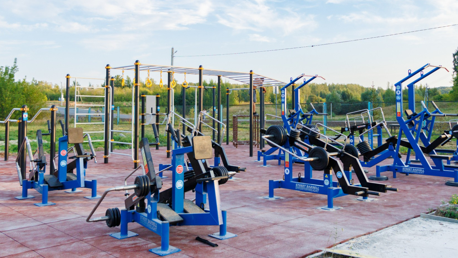 Майданчык төрле дәрәҗәдәге перекладиннар, турниклар һәм брусьлар комплексы, пресс өчен кибетләр, авышлыклар өчен эскәмия белән җиһазландырылган, махсус спорт япмасы салынган.