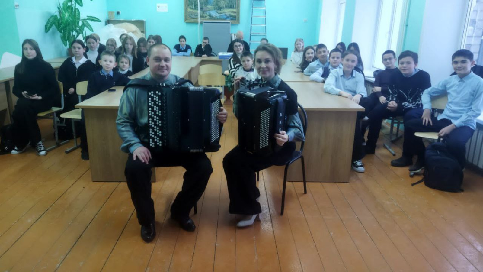 Югары Ослан гомуми белем бирү мәктәбендә сәнгать мәктәбе укытучылары Виктор һәм Кига Киреевларның концерты булды.