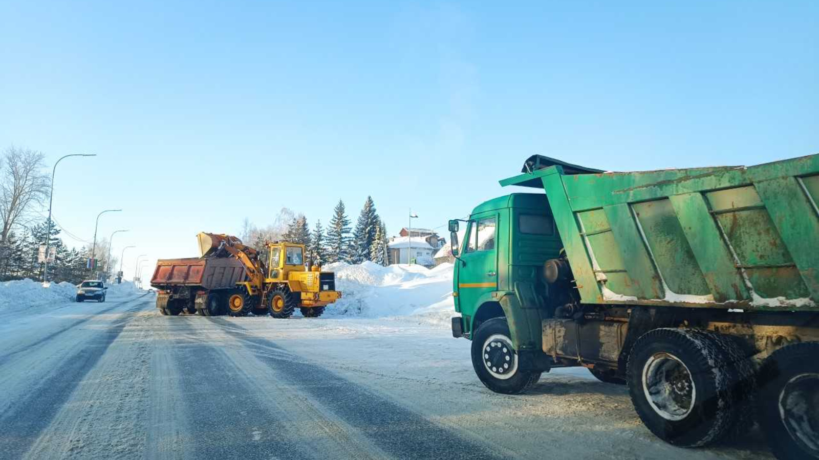 Бүгенге көндә район үзәге әкренләп үзгәрә: җәяүлеләр юллары чистартыла, махсус техника белән урамнар киңәйтелә, шулай ук кар чыгарыла башлый.