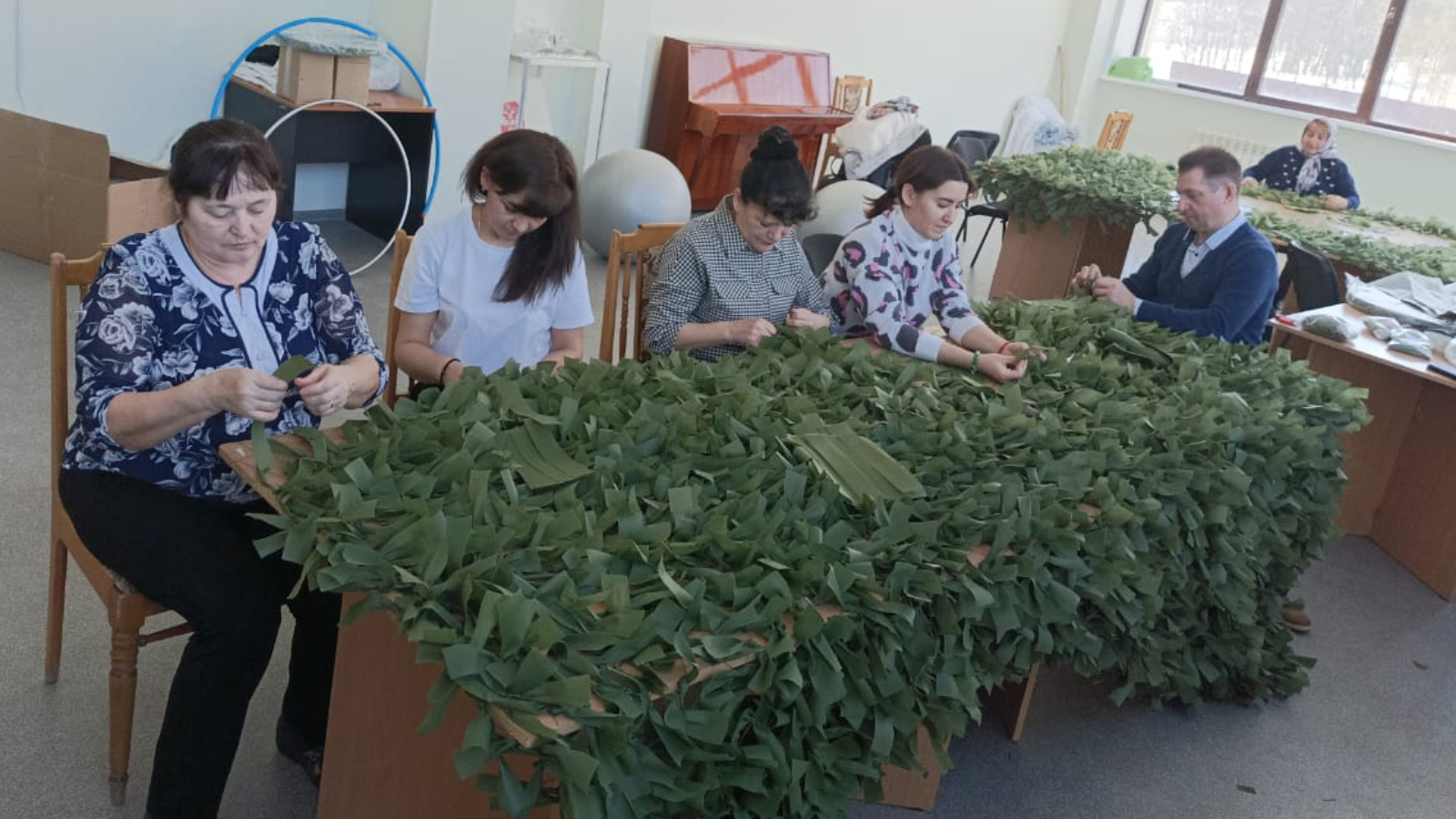 Бүген Югары Осланның Яшьләр клубында, Римма Троицкая җитәкчелегендә, Югары Ослан районының авыл хуҗалыгы һәм азык-төлек идарәсе коллективы, идарә башлыгы Р.Г. Гобәйдуллин җитәкчелегендә, кабат маскировка челтәрләре ясау буенча актив катнаштылар.