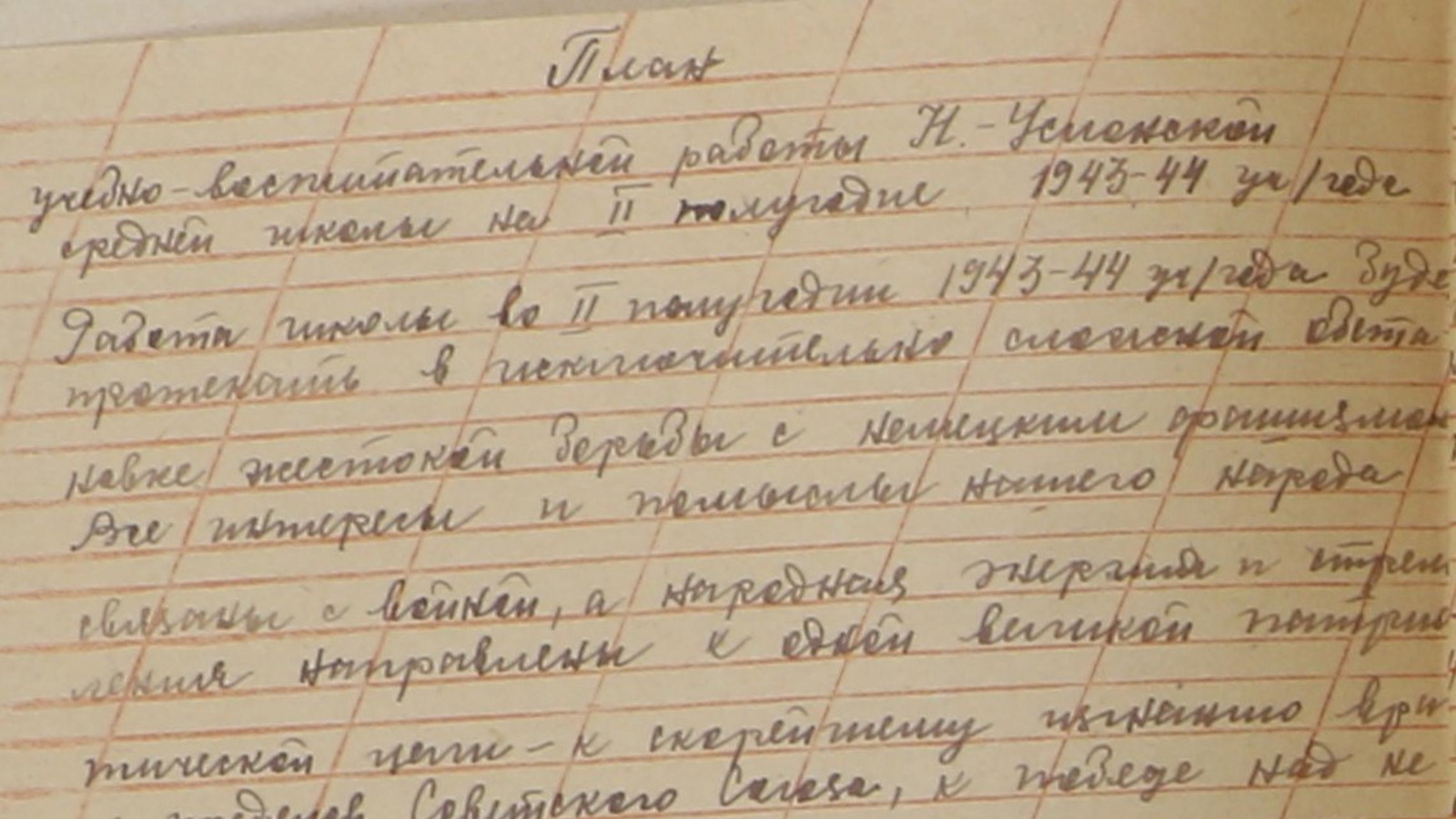 Югары Ослан муниципаль архивында сугыш чоры мәктәбенең идарә документлары саклана. Алар арасында 1944, 1945 елларда мәктәпнең укыту - тәрбия эше планнары бар. Гадәти, типовой документлар шикелле, ләкин ничек язылган! Гүя фронттан сводкалар укыйсың.
