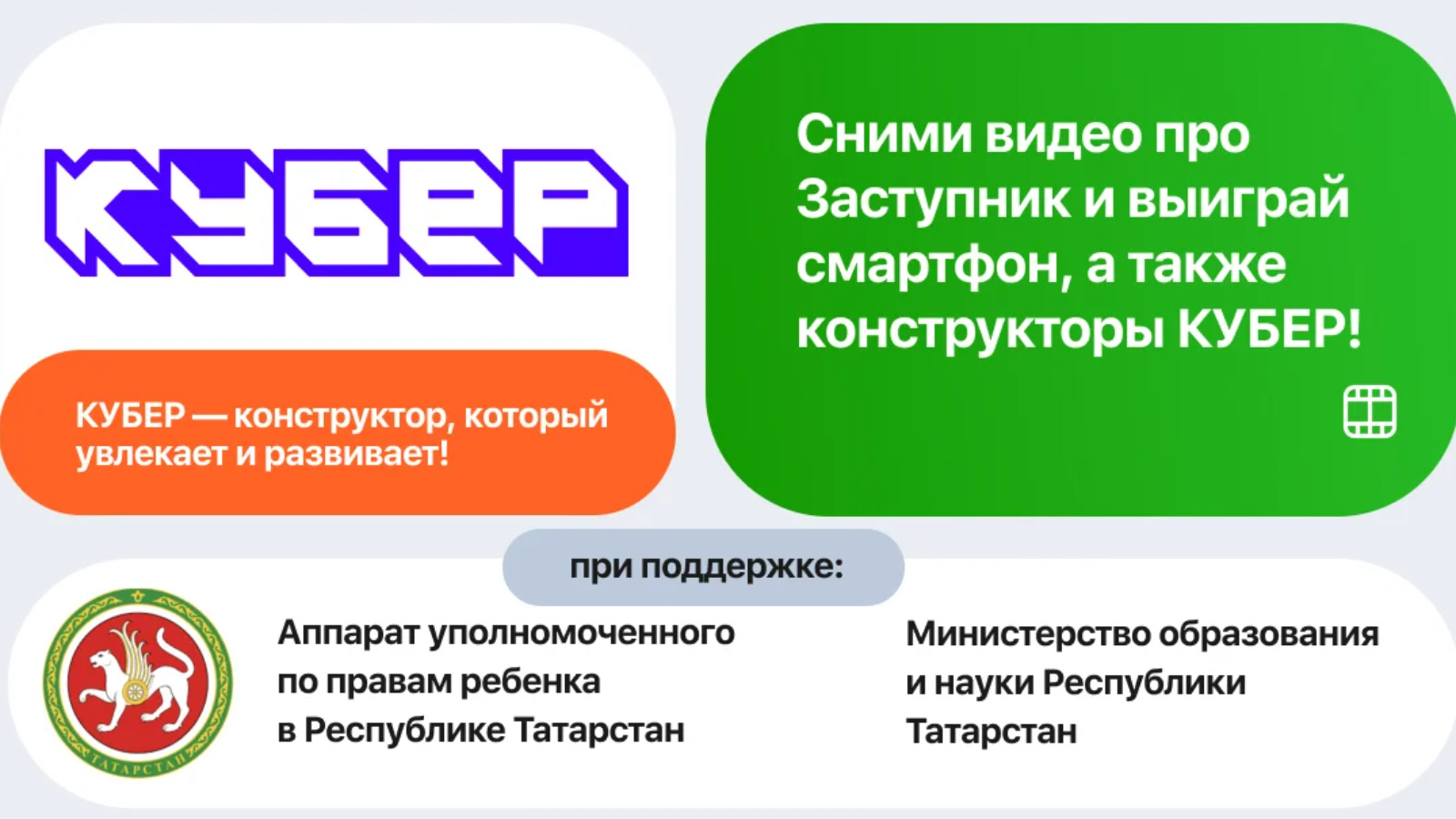 Бүләк фонды: "Заступник" бушлай мобиль кушымтасы куелган 10 смартфон! "Кубер" Конструкторлары