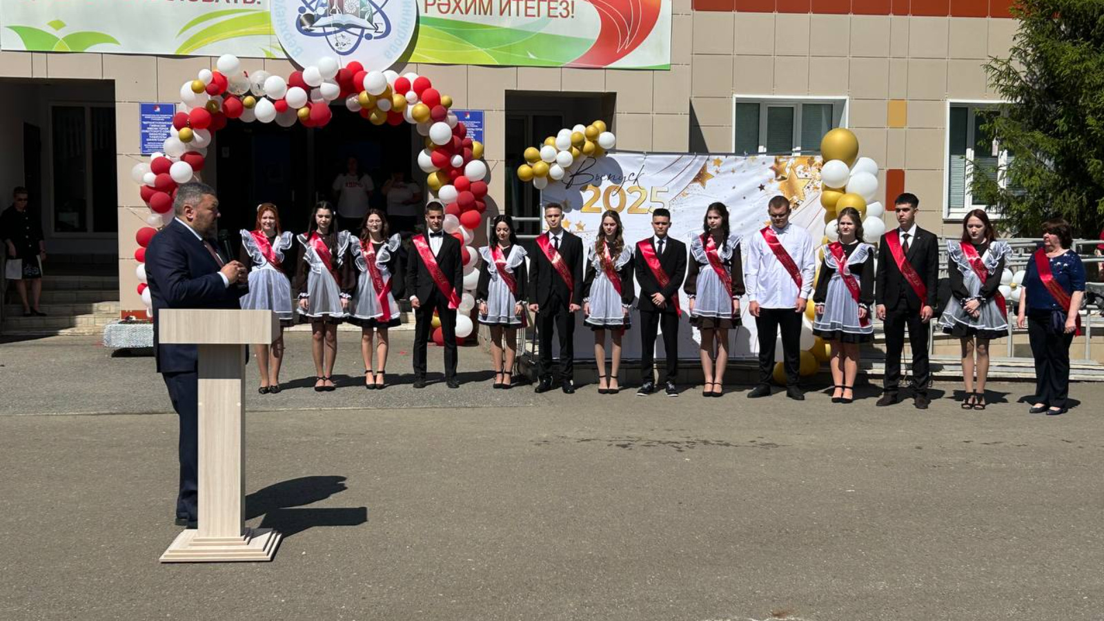 Район башлыгы бу этапның яшьләр тормышында мөһимлеген ассызыклады, алдагы имтиханнарны тапшыруда уңышлар теләде һәм чыгарылыш сыйныф укучыларының киләчәктә дә укуларында һәм һөнәри эшчәнлекләрендә үзләрен лаеклы күрсәтә алачагына ышаныч белдерде.