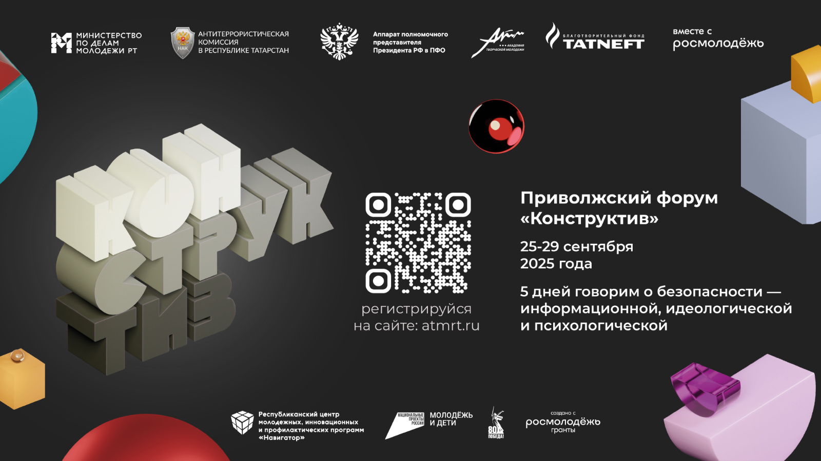 Теркәлү 2025 елның 20 сентябренә кадәр ачык: atmrt.ru/konstructiv. Форум ТР Яшьләр эшләре министрлыгы, ТР да террорчылыкка каршы комиссия аппараты, ТР Иҗади яшьләр академиясе тарафыннан гамәлгә ашырыла.