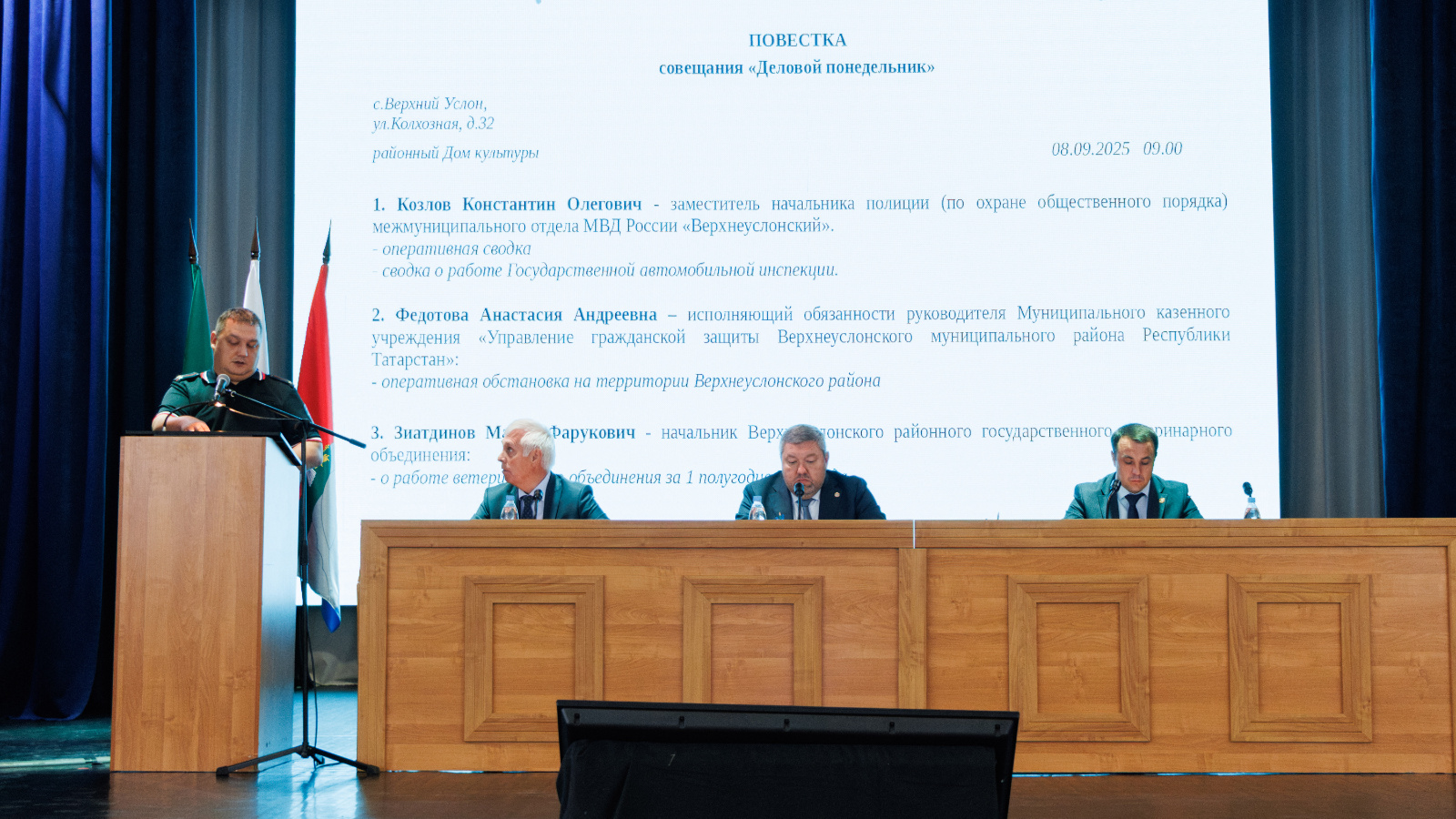 Катнашучылар гадәттәгечә район буенча оператив сводканы карадылар, шулай ук "Югары Ослан РДВБ" ДБУ начальнигын тыңладылар, аңа 2025 елның 1 яртыеллыгында ветеринария бүлеге эше турында сөйләде.