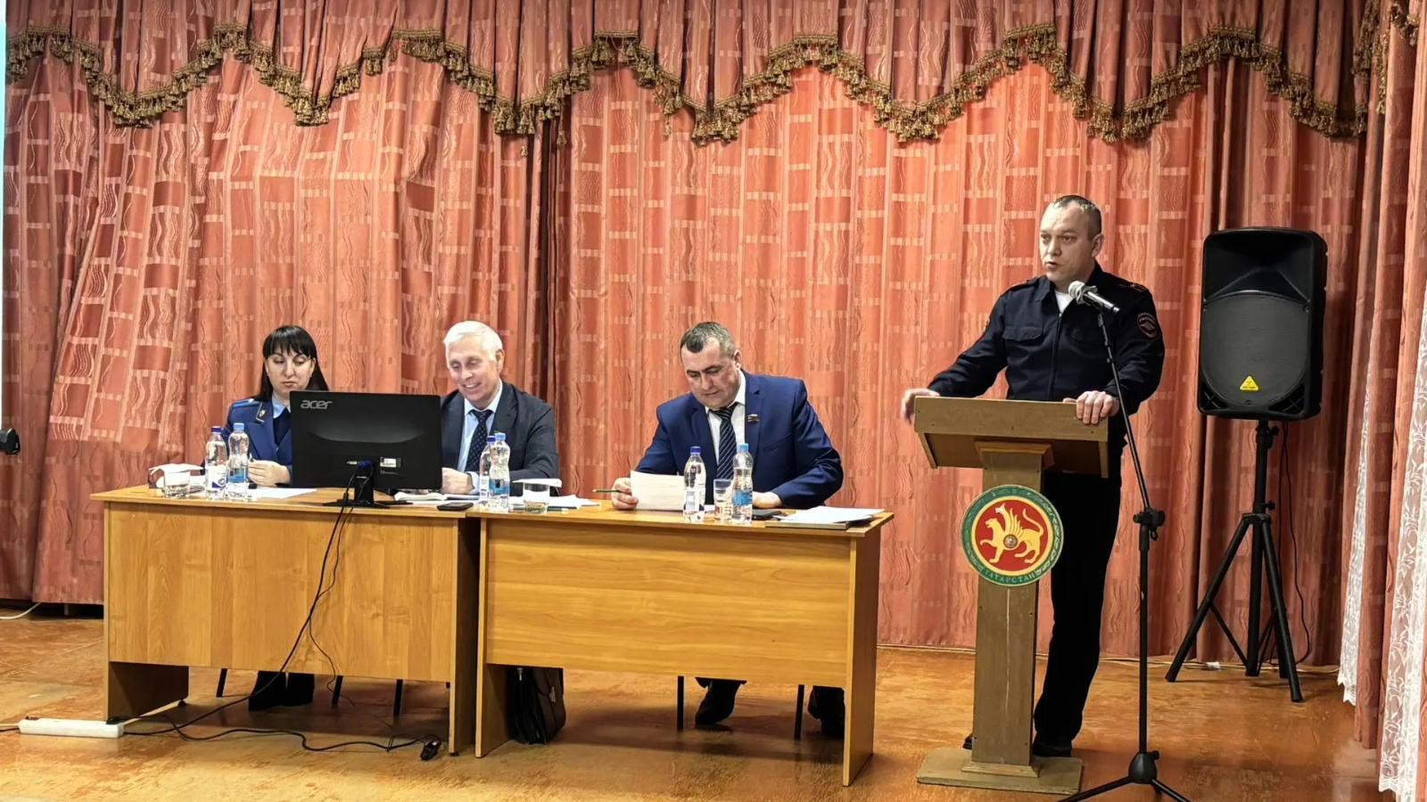 Җыенның мөһим өлеше хокук саклау органнары вәкилләре чыгышлары булды. Район прокуроры урынбасары Алсу Данилова гражданнарга мошенниклыкның актуаль схемалары һәм саклык чаралары турында сөйләде. Максим Щерба, полиция участок уполномоченныйлары һәм «Верхнеуслонский» муниципальара бүлегенең балигъ булмаганнар белән эшләү бүлеге башлыгы, халыкны уяулыкка өндәде һәм җинаятьчел һөҗүмнәрдән саклану ысуллары турында сөйләде.