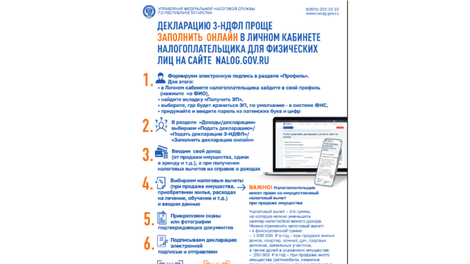 3-НДФЛ декларациясен «салым түләүченең шәхси кабинеты» сервисы аша тапшыру уңайлырак, анда мәгълүматларның күп өлеше алдан тутырылган инде.