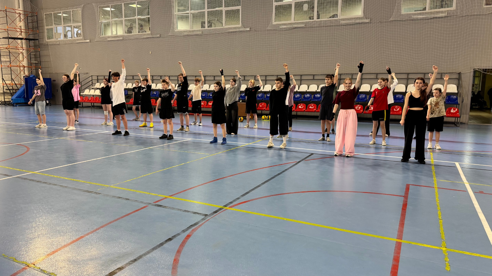 Без бу көнне билгеләп үтүнең иң яхшы ысулы — аны хәрәкәттән башлау дигән карарга килдек! Бүген «Чемпион» залында гомуми белем бирү учреждениеләре укучылары белән иртәнге зарядка узды.