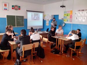 Банк вәкиле укучыларны Россиянең хөкүмәт бюджеты, керем чыганагы, салым, финанс системасы кебек төшенчәләр белән таныштырды.