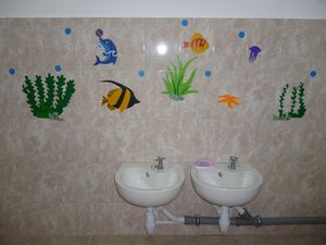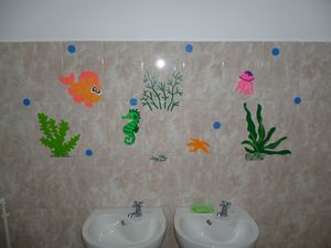 Юля Баранова бәдрәф бүлмәсендә рәсем төшерде. Хәзер бәдрәф бүлмәсендә балаларны сихри диңгез геройлары каршы ала.