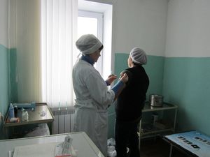 Фельдшер Татьяна Чукина гриппка каршы прививка ясады. Барлыгы 50 кешегə,шуларның 38- пенсионерлар,3-балалар бакчасы,2- башлангыч белем бирү мəктəбе хезмəткəрлəре,7- авыл халкы.