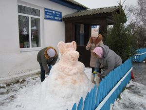 Яңа ел - бɵтен кешенең кɵтеп алган бəйрəме. Мəдəният хезмәткәрләре ,бәйрәм күңелле һəм кызыклы үтсен ɵчен мəдəният йорты янында кардан килəсе елның символы булган маймыл сынын ясап куйдылар. Яңа елга һəркем шат һәм күтәренке күңел белән аяк басып, ел буе сау-сəламəт яшəсеннəр.