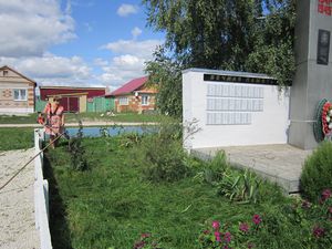 Мəдəният хезмəткəрлəре сугыш кырларында һәлак булган якташларыбыз истәлегенә куелган һәйкәл янын чүп үлəннəрнен чистарттылар .