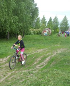 Икенче турда балалар коч хэм тизлеклэрен свнадылар. Обруч, скакалка, туп белэн торле эстафеталарда катнаштылар хэм велосипедта йореп курсэттелэр. Эстафета тэмамланганнан сон жинуче команда билгелэнде хэм балалар бер-берсен бэйрэм белэн котладылар.