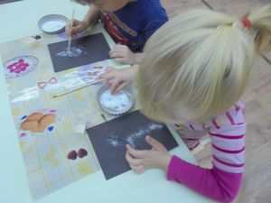 Бүген Ольга Дунаева балалар белән тоз ярдәмендә рәсем ясадылар. Бу шөгыль балаларга бик ошады.