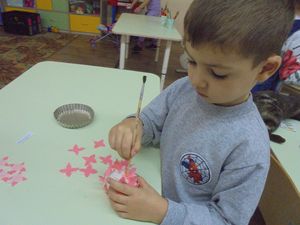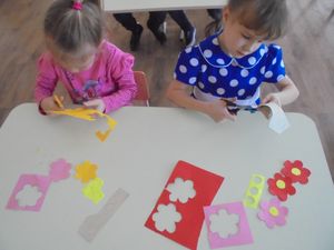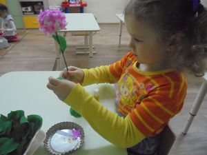 Бүген өлкән төркем тәрбияләнүчеләре Ольга Дунаева җитәкчесендә әниләр өчен чәчәкләр ясадылар.