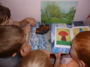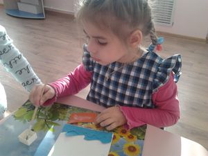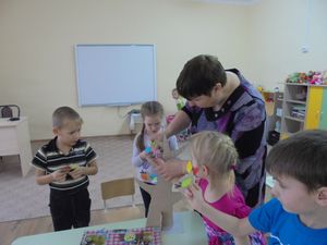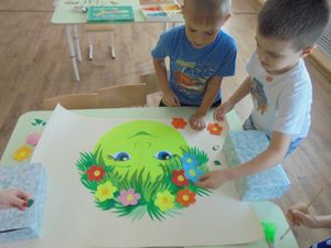 Бүген, олы төркем тәрбиячесе Ольга Дунаева, балаларны яңа сәнгать төре белән таныштырды. Балалар шигырьләр укыдылар, пластилин ярдәмендә рәсем ясадылар. Мондый техника балаларга бик ошады.