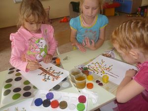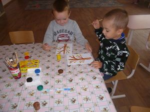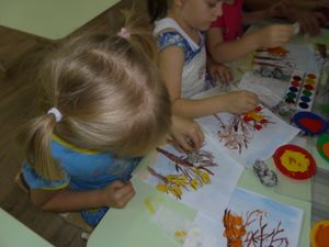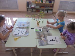 Бүген тәрбияче Ольга Дунаева рәсем дәресен яңа техника кулланып үткәрде. Балаларга методика бик ошады. Гуаш буяулар һәм кәгазь төерләре ярдәмендә рәсем тагында матуррак булды.
