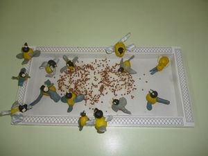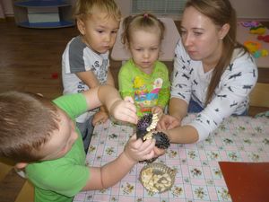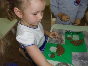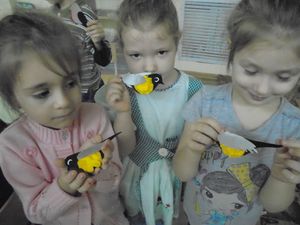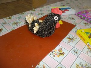Бүген, урта төркем тәрбияләнүчеләре тәрбияче Лены Мурзагильдина җитәкчелегендә, пластилин, көнбагыш һәм кабак орлыгы кулланып чуар тавык ясадылар. Бу эш төре балаларны шулкадәр кызыксындырды. Һәм бала үз өлешен кертте.