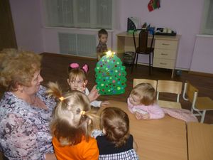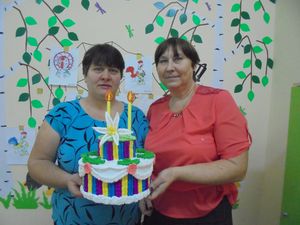 Ольга Дунаева һәм Татьяна Гудихина балаларны туган көне белән котлау өчен бик матур торт әзерләрә булдылар. Ольга Сочнева да читтә калмады. Булган буш вакытын файдалы үткәрде. Балаларга торт бик ошады.