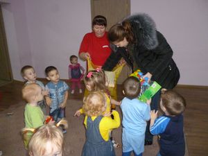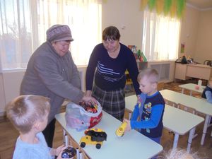 Бүген Лужаева Антонина Ивановна өлкән төркем балаларына уенчыклар бүләк итте. Малайлар бу бүләккә бик шатландылар. Тәрбиячеләр чиксез рәхмәтле.