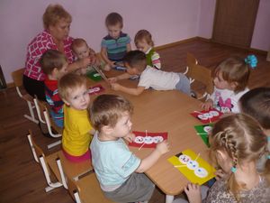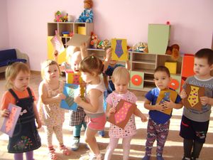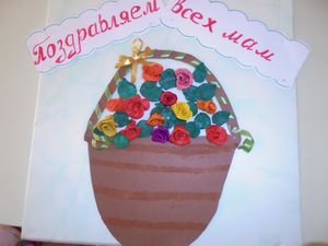 Кечкенә төркем тәрбияләнүчеләре, үз тәрбиячеләре Оксана Назарова һәм Татьяна Власова белән әниләр бәйрәменә коллектив открытка ясадылар.