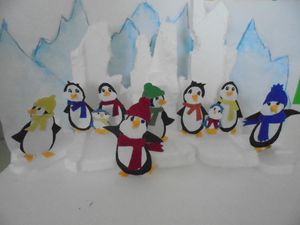 Бүген өлкән төркем тәрбияләнүчеләре шаблон ярдәмендә аппликация ясадылар. Бу вакытта тәрбияче Ольга Дунаева Антарктида ясады, ә балалар аның эшен үз эшләре белән тулыландырдылар.