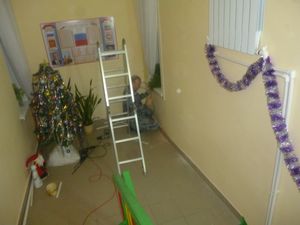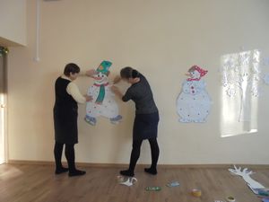 Зурлар төркем тәрбиячеләре Ольга Дунаева һәм Татьяна Гудихина үз төркем бүлмәсен бизәделәр. Бу ел искәрмә түгел. Быел алар кышкы панно ясадылар. Кар бабай һәм кар бөртекләре яңа ел кәефе биреп тора.