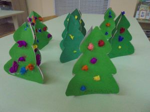 Көзге бәйрәмнәрдән соң, балалар актив рәвештә Яңа ел бәйрәменә әзерләнә башлый. Балалар үз куллары белән төрле материал ярдәмендә яңа ел бизәкләре ясыйлар. Урта төркем тәрбиячеләре балалар белән бергә чыршы ясадылар. Эш өчен аларга ватман, төсле салфетки һәм клей кирәк булды.