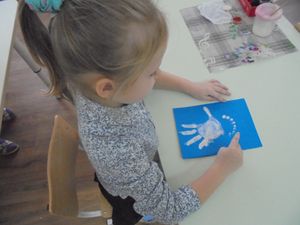 Бүген тәрбияче Ольга Дунаева балалар белән Кыш бабай портреты төшерделәр. Дәрестә традицион булмаган алымнар куланылды. Бармаклар һәм кул ярдәмендә Кыш бабай портреты ясалдылар.