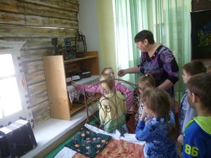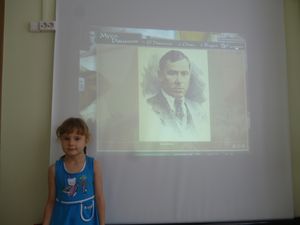 Балаларны Абызова Римма Юрьевна ачык йөз белән каршы алды һәм күргәзмә документлар һәм фотолар нигезендә барлыкка килуе турында әйтте. Шулай ук ул, күптән түгел М.Җәлилнең кызы Чулпан Муса кызы килгәнен сөйләде. Быел “Моабит дәфтәрен укыйбыз” исемле акция игълан ителде. Безнең укучылар да бу акцияга кушылдылар, татар һәм рус телендә шагыйрьнең шигырьләрен сөйләделәр.