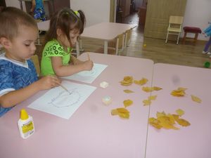Көз – бик матур ел фасылы. Бүген өлкән төркем тәрбиячесе Ольга Дунаева балалар белән коллектив композиция ясадылар.