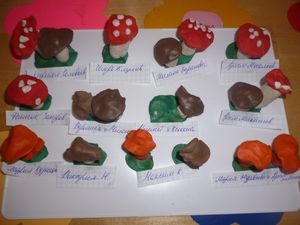 Бүген урта төркем тәрбияләнүчеләре көзге урманга сәяхәткә «киттеләр». Алар анда гөмбәләр белән таныштылар. Пластилиннан төрле гөмбәләр ясадылар.