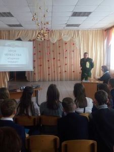 Өлкән сыйныфларда "Батырлык дәресе"ндә Югары Ослан Хәрби комиссариаты җитәкчесе Шакиров Р.А. булды. Рөстәм Азгарович үз чыгышында егетләрне үз илебезнең лаеклы гражданнары булырга эндәде.