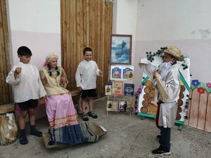 Мәктәп яны лагере артистлары тарафыннан «Крестьян малае һәм патша кызы”дигән әкият- спектакль күрсәтелде.Артистларның талантыннан тамашачылар таң калдылар. Артистларны сәхнәдән озак кына җибәрмичә тордылар. Бу әкиятне балалар бакчасында да күрсәтергә булдылар.