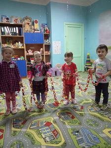 Югары Ослан районының Печище авылының балалар бакчасына йөрүче нәниләр , тәрбияче апалары белән беррәттән , яңа ел гирляндыларын ясарга булыштылар. Һәркөнне балалар түгәрәкләрдән торган гирляндыны ябыштыралар, төсләрне кабатлыйлар. Балалар үз эшләреннән канәгәтлек алалар.
