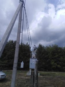 Введенка Бистәсендә электрик Шамаев Эдуард урамнарны яктырту өчен урнаштырылган баганаларга исәпләү узеллары корылмаларын урнаштыру эшләрен башкара .