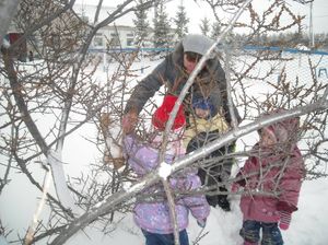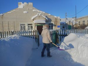 Бу көннәрдә яуган кар балалар бакчасының коллективына эшне арттырды. Алар көрәкләр тотып балаларның уен майданчыгын һәм юлларны чистарттылар.Шулай ук садик бинасының түбәсендәге һәм кошлар ашханәсенә юлларны чистарттылар.
