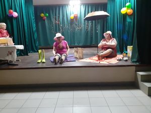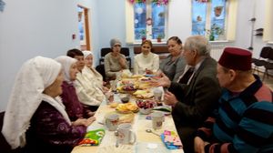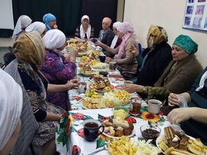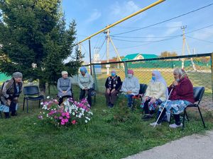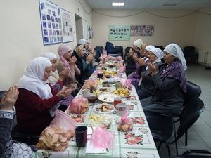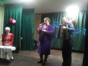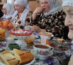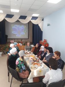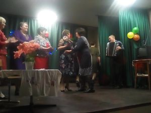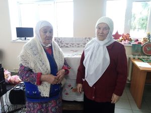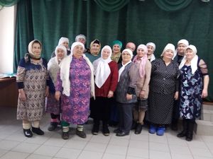 Чара уен-көлке, баян тавышына җыр-бию белән үрелеп барды.Бәйрәмчә корылган өстәл артында чәйләр эчеп,күрешеп,сөйләшеп утыруга ни җитә!Соңыннан бергәләп фотосүрәткә төштеләр.Өлкән буын кешеләренә игътибарлы булуы,аларга да бәйрәм оештыруы өчен күрше Ватан авылыннан кунакка килгән Вахит кызы Суфия Төхвәтуллина,Фәридә Галиева узләренең зур рәхмәтләрен клуб мөдиренә җиткерделәр.